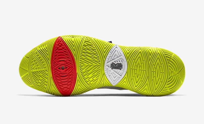 Nike 将 4 月 13 日这一天命名为 Mamba Day,每年的「曼巴日」都有科比主题的专属产品。欧文 Kyrie 5 “Mamba Mentality” 配色灵感就来自于 Zoom Kobe 5 “Chaos” 的小丑配色,白色鞋身辅以电光紫捕蝇草的特别鞋面呈现,大底与细节采用荧光绿点缀。鞋舌 Logo 特别采用科比的武士 Logo 与欧文个人标志相互拼接而成,致敬意义极为浓郁。