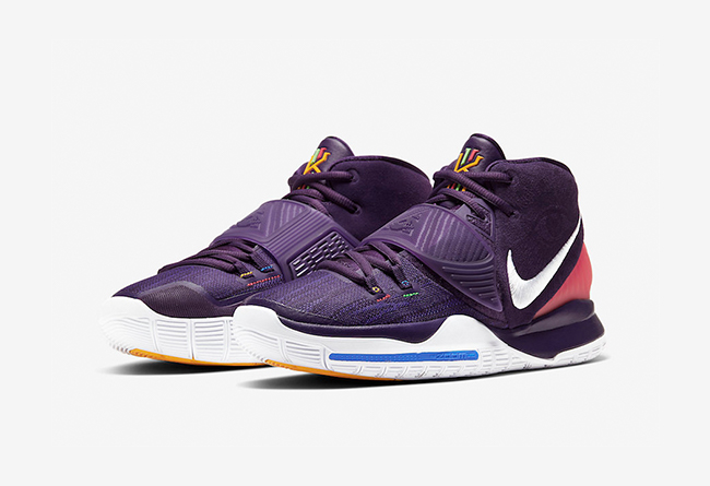 #欧文#新一代签名球鞋 Nike Kyrie 6 大紫配色发售,鞋身一袭深紫色示人,标志性魔术绑带则同样采用紫色半透明材质呈现,同时将鞋身分为前后两端。