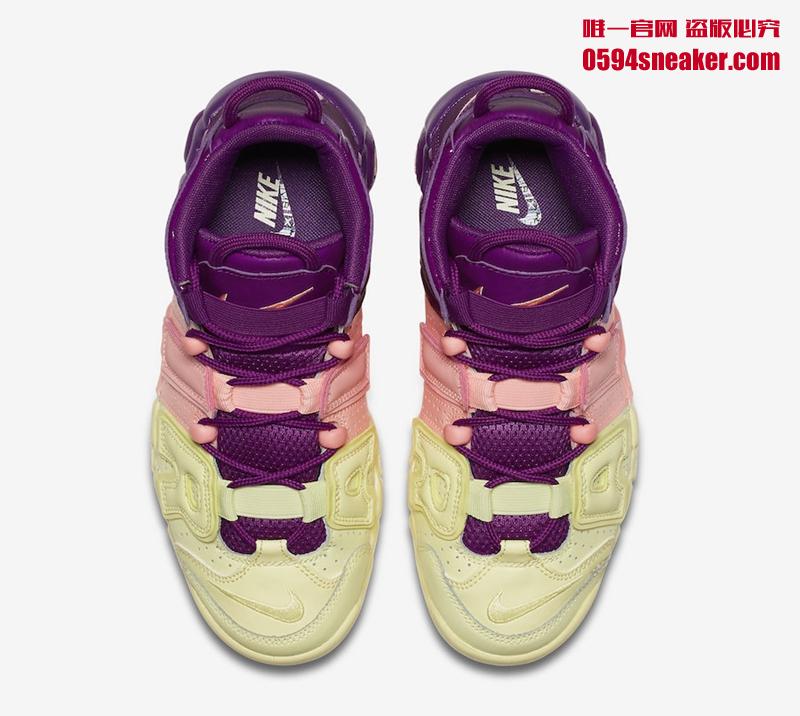 The Nike Air More Uptempo GS not only has a retro classic look, but also has a cool ice cream-like three-color articulation on the shoe body, which is cute and energetic to the extreme. Lemon Yellow, Apricot Pink, and Grape Purple run through the upper and midsole, creating a bright visual impact.