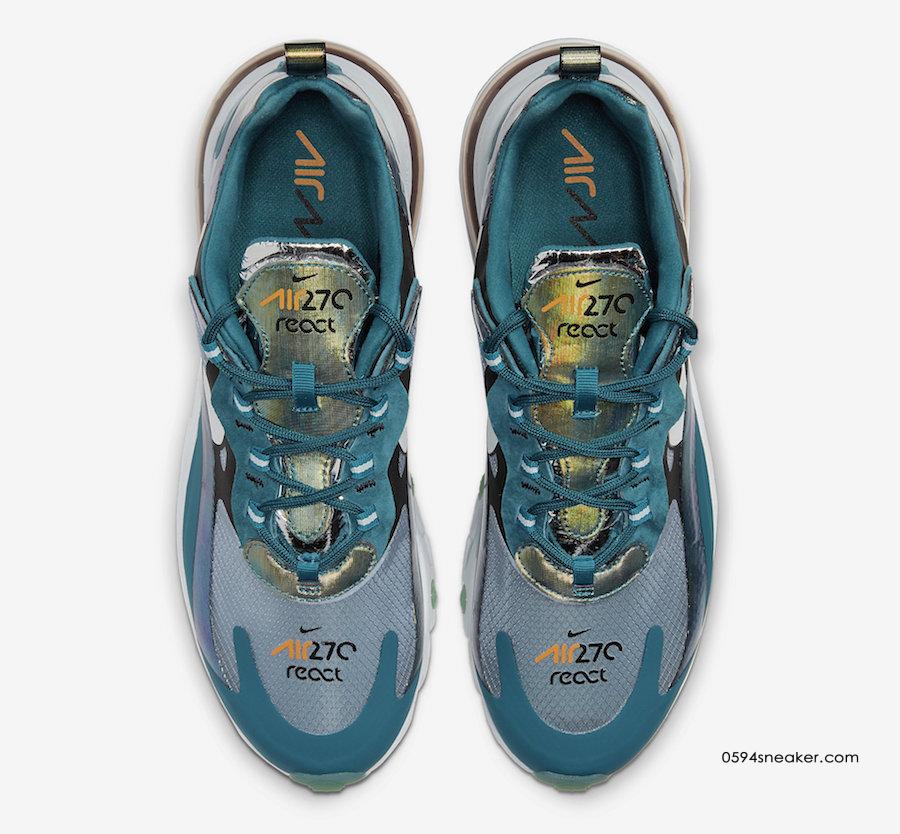 Nike Air Max 270 React 系列全新配色再度发售,依旧是经典后掌气垫设计,加上 React 科技辅助;配色方面则采用湖水绿为主色,搭配灰、白、黑三色构成。