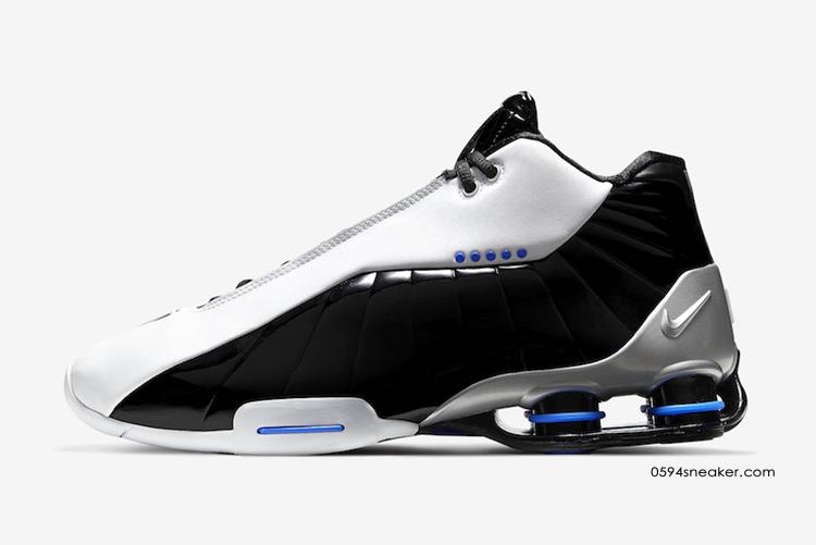 卡特上脚的经典战靴 Nike Shox BB4 复刻发布,经典的黑白大漆皮配色,鞋面采用简约白色装扮,采用一脉相承的皮革材质打造,最大亮点当属侧身采用大面积黑色漆皮材质覆盖,灯光照射下带来极为亮眼的视觉效果。