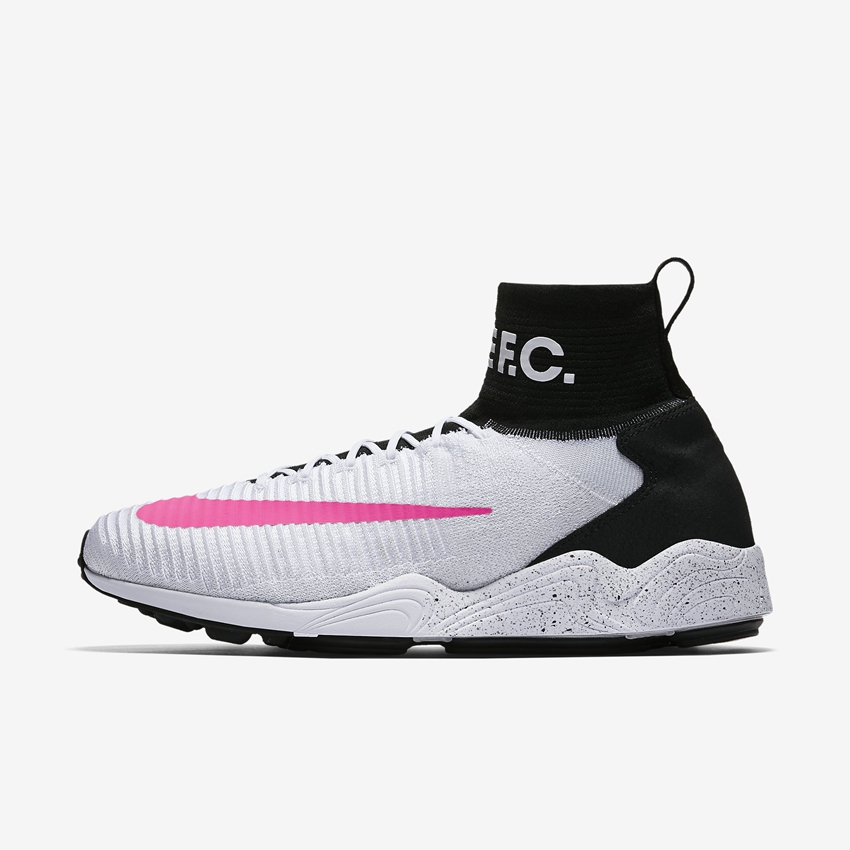融合 Air Zoom Spiridon 的全掌 Zoom 大底,黑白织物鞋面碰撞出夺目效果,辅以粉色 Swoosh 惊艳点缀鞋头,散发潮流气质的同时,这一抹高能亮点恐怕让人无法忽视!袜领 NIKE F.C. 字样更表明不同以往的家族身份,无疑是彰显球迷身份的绝佳选择!